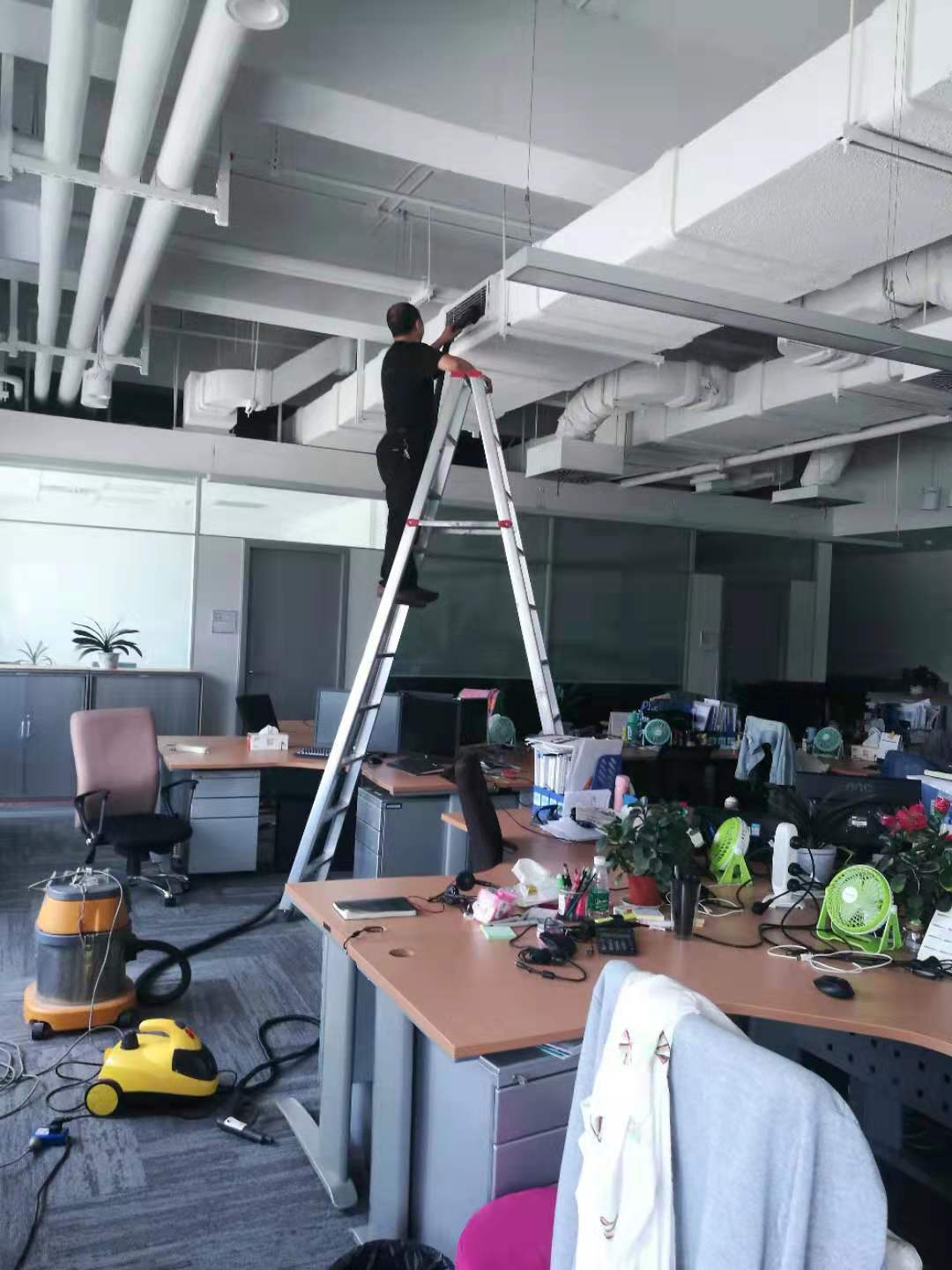 成都大型美的中央空調(diào)維修,維保,清洗施工中。。。