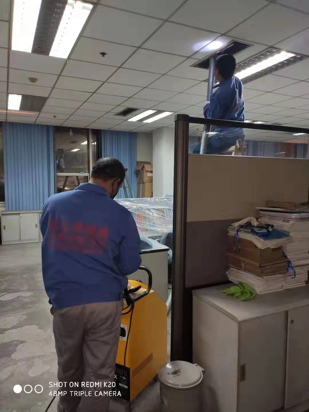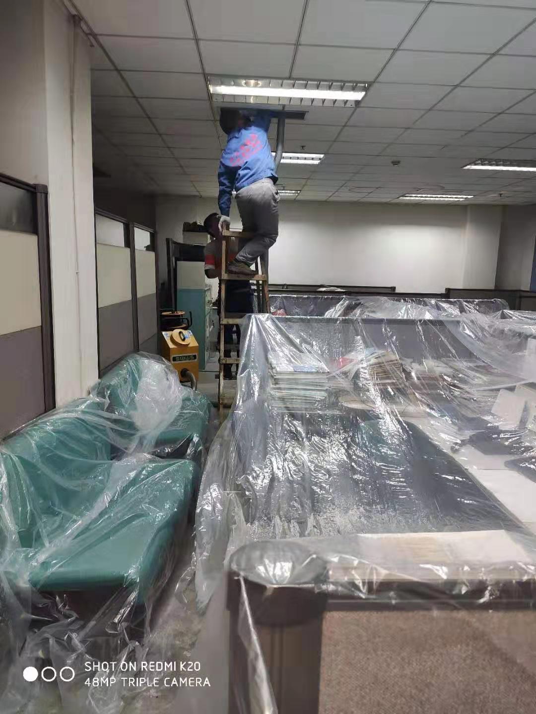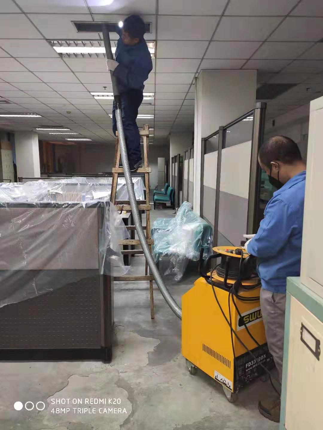 地奧藥業(yè)集團中央空調(diào)風管清洗消毒,師傅認真嚴格按要求施工。